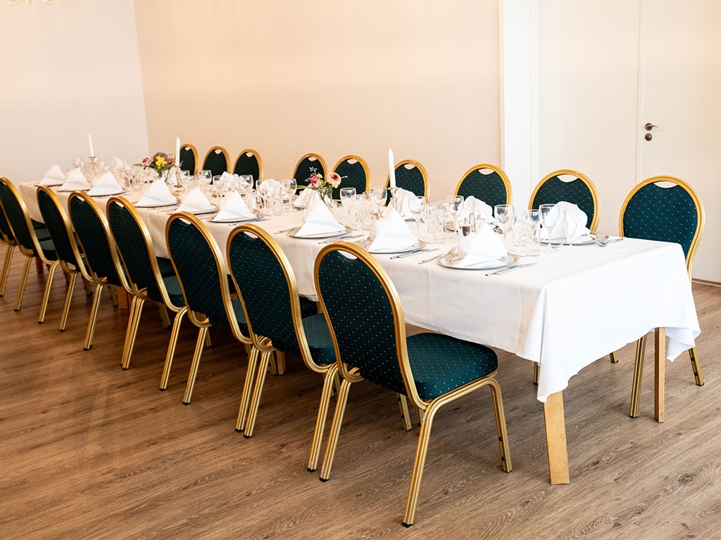 De 3 sale kan slås sammen, så der er plads til 150 deltagere, vi har derfor plads til konferencer, gymnasiefester, galla, firmafester og bryllupper.